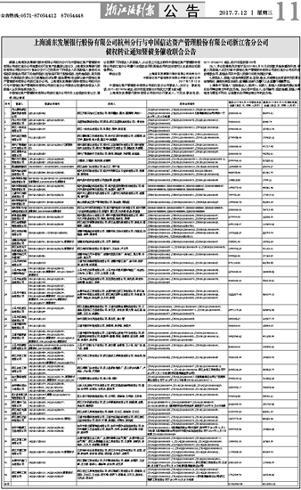 上海浦东发展银行股份有限公司杭州分行与中国信达资产管理股份有限公司浙江省分公司 债权转让通知暨债务催收联合公告