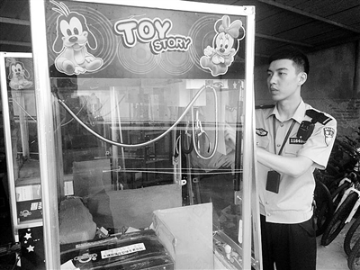 11日下午,民警在辖区某超市门口见到这台“夹香烟机”时,向超市店主黄某了解情况,黄某说,机器并非店里所有,是1名陌生男子前些天摆放在超市门口的,该男子每天付给她50元作为租金和电费。