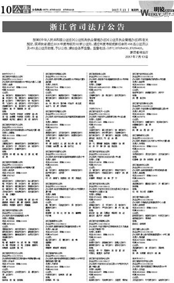 按照《中华人民共和国公证法》《公证机构执业管理办法》《公证员执业管理办法》和有关规定,现将我省通过2016年度考核的92家公证处、通过年度考核或新任命的496名公证员以及453名公证员助理,予以公告,请社会各界监督。监督电话:(0571)87054430、87054403。