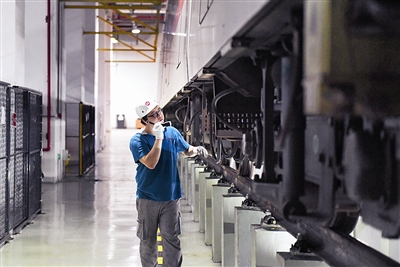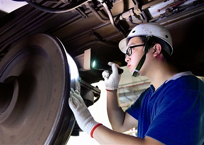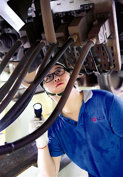 钻车底爬车顶 为列车做“体检”