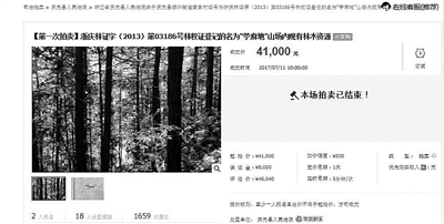 昨天,司法拍卖网(https://sf.taobao.com/)显示,“浙庆林证字(2013)第03186号林权证登记的名为‘苧麻地’山场内现有林木资源”竞买记录为“已成交”。