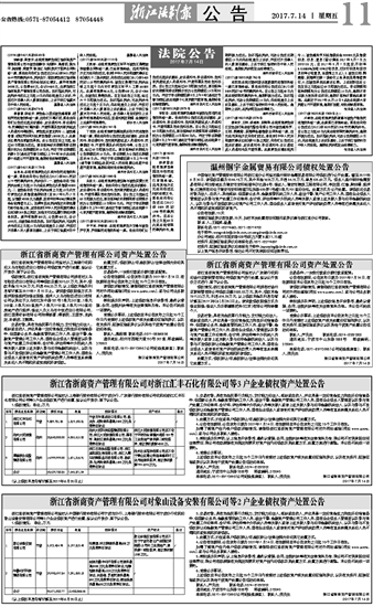 浙江省浙商资产管理有限公司对浙江汇丰石化有限公司等3户企业债权资产处置公告