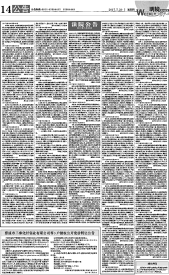 慈溪市三泰化纤实业有限公司等3户债权公开竞价转让公告