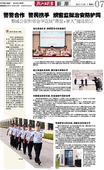 警务合作新机制如同一张以省金华监狱狱部为重心、覆盖全辖区的立体防控网,为“平安监狱”建设提供了有力的保障。
