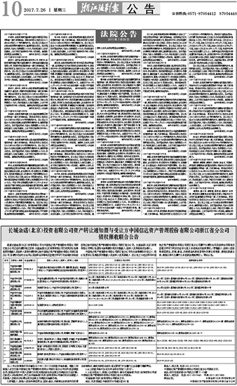 长城金诺(北京)投资有限公司资产转让通知暨与受让方中国信达资产管理股份有限公司浙江省分公司 债权催收联合公告