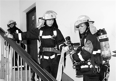 然而,演习并未到此结束。检查完水带的衔接,楼底的战士开始按照指挥员的命令,对水带进行加压……