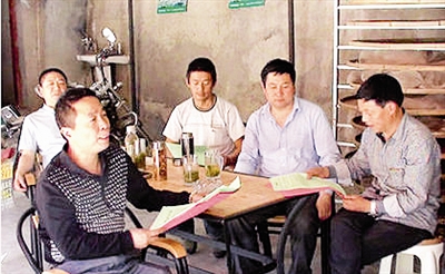 | 祝云昌(左前)为困难群众提供法律援助 |