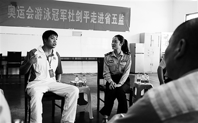 本报讯 “在我参加的S3级比赛中,同池竞技的运动员都能用两只手划水,而我只能用一只手。要想游得比他们快,取得冠军,唯一的捷径就是比他们付出成倍甚至十倍以上的艰辛。”近日,残奥会游泳冠军杜剑平走进省第五监狱,与服刑人员面对面交流人生感悟。