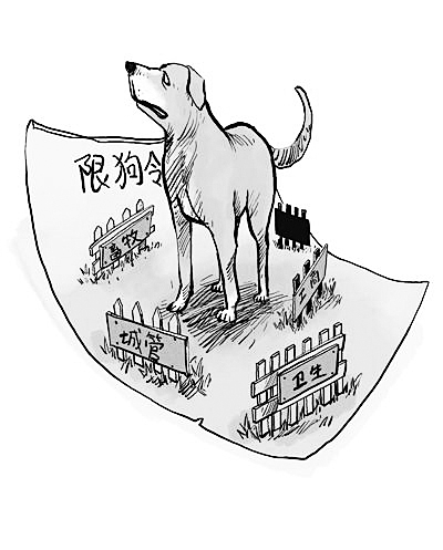 每只狗需缴纳400元的养犬管理服务费,居民每户限养一只狗……这些年,全国多地陆续出台了禁犬、限制养犬的条令。但由于治理多为“九龙治水”,而且对违规犬只的打击经常出现互相推诿、“睁一只眼闭一只眼”等情况,导致相关规定常常草草收场。这正是:频出限狗令,奈何多短命。厘清养犬责,严管治任性。
