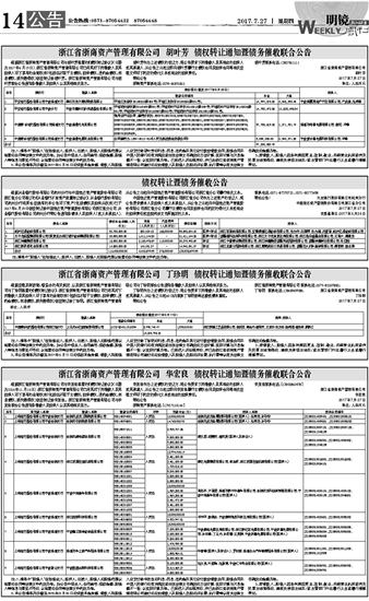 浙江省浙商资产管理有限公司 胡叶芳 债权转让通知暨债务催收联合公告
