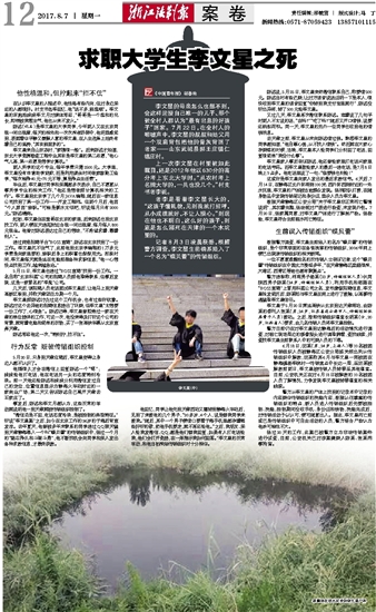 根据天津静海区公安分局“关于李文星非正常死亡警情说明”,其衣着完整,经法医对尸表进行检查,未发现外伤。7月20日,经家属同意,对李文星尸体进行了解剖尸检。经检验,李文星符合生前溺水死亡特征。