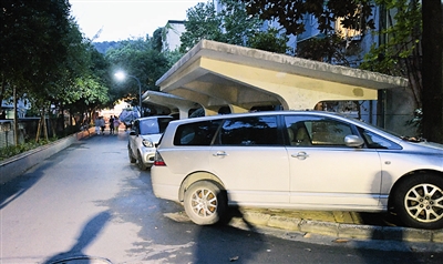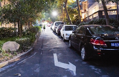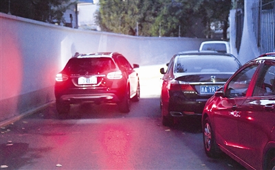 | 停放私家车后,狭窄的道路仅能供私家车勉强通行 |