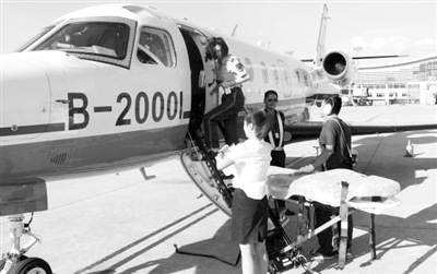 8月22日下午4时30分,一架航班号为B20001的急救包机紧急降落在杭州萧山国际机场,30分钟后将搭载一名马来西亚籍重症肝硬化病人至台湾进行抢救治疗。