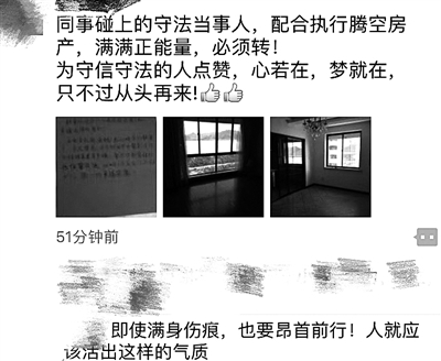 “每个被执行人都这样,破解执行难指日可待,为你点赞,我的被执行人。”没过几分钟,李敏凯也发了一条朋友圈。
