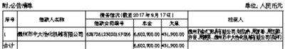 | 注:1、清单中“担保人”包括保证人、抵押人、出质人,担保人的担保范围以签署的合同等法律文件约定为准。如公告中债务人、合同编号、债权金额、担保人等信息与事实不符的,以签署的合同等法律文件约定为准。 2、本公告清单列示截至2017年8月17日的贷款本金余额,借款人和担保人应支付给杭州坤盛资产管理有限公司的利息、罚息、违约金及其它应付款按借款合同、担保合同及中国人民银行的有关规定或生效法律文书确定的方法计算,实际计算与欠息金额不一致,以实际计算为准。已经进入诉讼程序的,并已由浙江省浙商资产管理有限公司垫付的应由借款人及担保人负担的诉讼费、执行费等以有关法律文书确定的金额为准。 3、若借款人、担保人因各种原因更名、改制、歇业、吊销营业执照或丧失民事主体资格的,请相关承债主体及/或主管部门代位履行义务或履行清算责任。 |