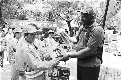 今年盛夏,中外调解员们自费精心准备了实用的礼物,为当地的环卫工人送清凉,并主动帮助工人们清扫道路垃圾。约旦籍调解员穆罕奈德表示:“义乌就是我们的家,作为新义乌人,我们有责任有义务为商城的文明和城市建设出一份力。”简单的语言,道出了所有调解员的心声——商城的美丽离不开大家。