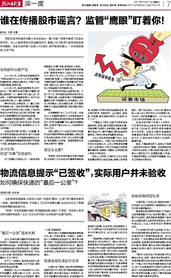 浙江法制报 深一度 00007 物流信息提示“已签收”,实际用户并未验收 2017-10-11 2 2017年10月11日 星期三