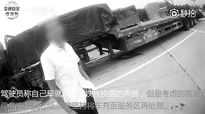 货车后部铁板摇摇欲坠 司机:不停车是为了“安全”