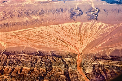 “飞机翱翔在三万英尺的高空,机翼下,显现的是满目红色的沙漠、戈壁,当飞越天山上空时,连绵的雪山竟然离我那么近,仿佛举手便能摸到……我的心,顿时被大自然蕴藏着的美丽与力量征服,那一刻,我唯一能做的,是举起相机,让这风景成为永恒…… ”