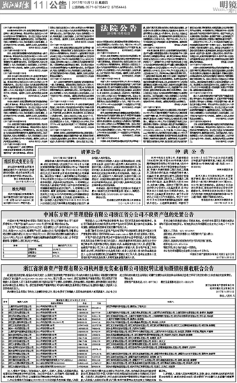 中国东方资产管理股份有限公司浙江省分公司不良资产包的处置公告