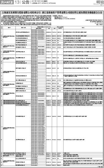 上海浦东发展银行股份有限公司杭州分行 浙江省浙商资产管理有限公司债权转让通知暨债务催收联合公告