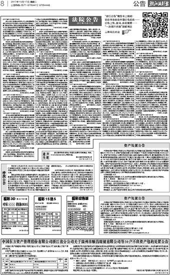 中国东方资产管理股份有限公司浙江省分公司关于温州市顺昌眼镜有限公司等30户不良资产包的处置公告