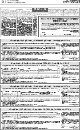 浙江省浙商资产管理有限公司对义乌市日顺建材有限公司等2户企业债权资产处置公告