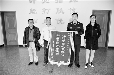 本报讯 “边防警察心系群众,为民解困办事高效。”近日,湖南一家企业的负责人朱先生专程来到舟山边防支队小沙边防派出所,将一面锦旗送到民警手中。