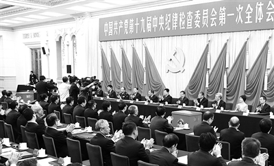 | 10月25日,中国共产党第十九次全国代表大会选举产生的中央纪律检查委员会在北京举行第一次全体会议。新华社 姚大伟 摄 |