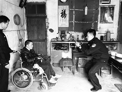 毛先生所在的外范高塘自然村海拔有840米,山路崎岖,到镇上要坐一个多小时的车,来去一趟不容易。此前,民警张汀在村里走访时得知,村民毛先生身份证遗失后一直没补办。具体了解后才知道,原来毛先生多年前因车祸导致半边肢体瘫痪,常年卧病在床,平时跟70多岁的老父亲生活在一起。因为身份证遗失,他的残疾证明、农村医疗保险等均无法办理。毛先生也一直想补办身份证,但因身体原因根本没法到镇上去。