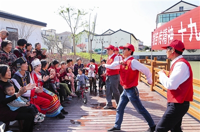 10月30日,德清县雷甸镇几名老党员自发组成十九大精神宣传队,自编曲目,用乡音乡曲在雷甸村说唱十九大精神。
