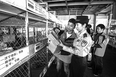 连日来,台州市公安局黄岩分局加强对快递行业的管理,强化督查和指导力度,确保快递行业规范经营,减少各种安全隐患。图为城北派出所民警在一家快递公司检查快递实名登记情况。通讯员 喻跃翔 摄