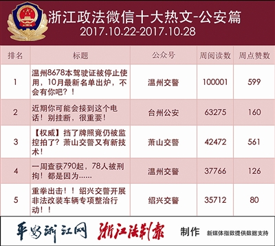 本周公安热文榜上出现了大量工作类信息。其中,“台州公安”的《近期你可能会接到这个电话!别挂断,很重要!》一文向大家介绍了“0571—12340”这个调查号码。从标题开始,本文的小编就没有按照常规的介绍“套路”出牌,而是用类似提醒的方式,向大家介绍了这个号码的作用和相关的工作,让人耳目一新,该文也获得了本周热文榜第二名的好成绩。