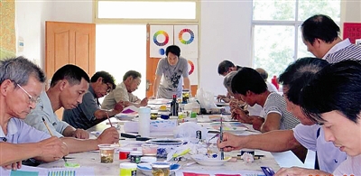 作为全国知名的十大农民画村和中国民间文化艺术之乡,余东村有一支名气不小的农民画家队伍,他们白天背锄头种地,晚上拿起笔画画,把卧室做画室、门板当画板,几十年来创作不辍,用质朴的笔触描绘家乡的美丽风光,见证新农村建设的新景象。徐群彩便和其他社工,走近这些农民画家,把禁毒宣传的知识和内容,讲给他们听,激发他们的创作灵感。郑利民说,参与这次禁毒宣传的有40多名画家,上至83岁,小至12岁,大家都很有激情。