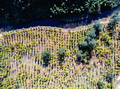 图为空中俯瞰小浦镇的“十里古银杏长廊”银杏林(11月5日摄)。 新华社 徐昱 摄