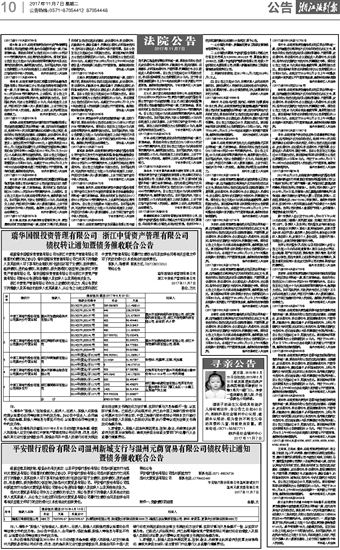 瑞华国银投资管理有限公司 浙江中赁资产管理有限公司 债权转让通知暨债务催收联合公告