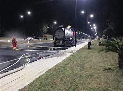 今年7月20日晚6时许,指挥中心接到报警:一辆装满危化品的油罐车停在高速出口,现场有气体泄露,气味刺鼻,附近群众深感恐慌。约5分钟后,救援处置力量就抵达了事发地点。