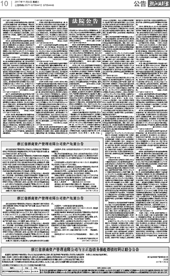 浙江省浙商资产管理有限公司与方正浩债务催收暨债权转让联合公告