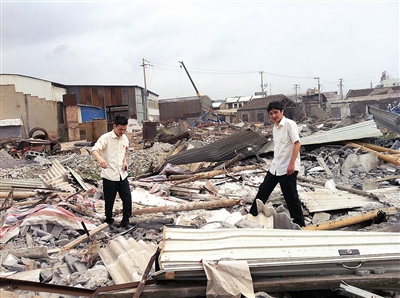 | 公证员在“三改一拆”工作现场进行拍摄取证 |