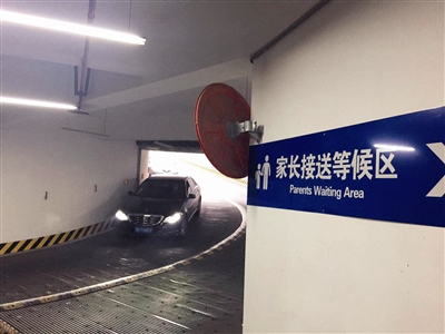 “闸机出口两边是专门的家长等候区,约有2000平方米,我们设置了阅读区,还安装了新风系统确保空气质量。左手边是位于学校操场下方地下车库,总共198个车位,是家长的停车区,右手边上楼是人行通道和电动车、自行车停放区。”校长贾科召介绍,“地下智慧接送系统”的主要核心区域正是这两大块,并通过单循环实现人车分离。“学生刷卡出校后,家长手机上会同步收到短信,等候区上的显示屏也会显示是哪个班级、哪个学生放学。”