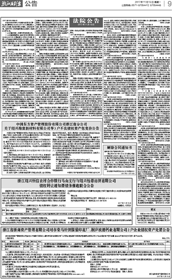 浙江省浙商资产管理有限公司对市荣马针织服装印花厂、桐庐欧德钙业有限公司2户企业债权资产处置公告