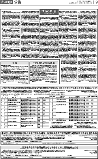 中国信达资产管理股份有限公司浙江省分公司与上海浦银安盛资产管理有限公司债权转让暨催收联合公告