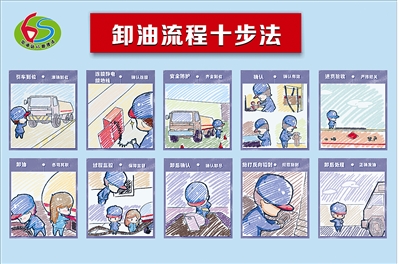 “第一步,引导油罐车到位;第二步,连接静电接地线,准备消防器材,设现场警示……”在杭州萧山机场加油站的卸油区,记者看到了一块醒目的“卸油作业指南”牌,上面清楚写明了卸油流程“十步法”。