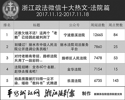 本期法院热文榜中,“路桥区人民法院”的《对付老赖有奇招,路桥法院只用了一段彩铃……》,和“这”样标题有着异曲同工之妙。和往日的“老赖曝光台”不同,这次是用了一段彩铃整治“老赖”,是怎样的一段彩铃能产生这样的效果,同样是设置了悬念。