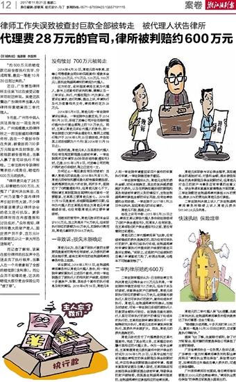 代理费28万元的官司,律所被判赔约600万元