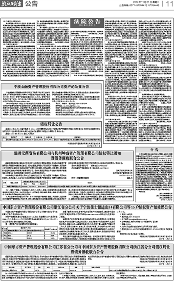中国东方资产管理股份有限公司江苏省分公司与中国东方资产管理股份有限公司浙江省分公司债权转让 暨债务催收联合公告
