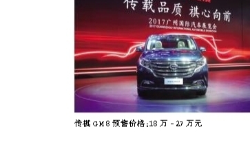 | 传祺GM8预售价格:18万-27万元 |