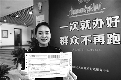 自“最多跑一次”改革以来,台州市公安局椒江分局推出了省内身份证免费快递、上门办证、派出所窗口周末无休制等服务举措,共办理“最多跑一次”事项51万余件,为156人提供了便利。图为11月22日民警展示免费邮寄的身份证快递。