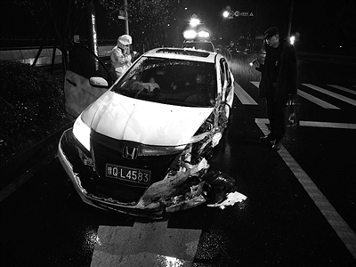 接到报警后,PTU民警孔少华带队迅速赶往现场,发现事发现场的河南牌照白色本田车已被撞得变形,汽车零件散落一地,江堤大坝也被撞出了个口子。