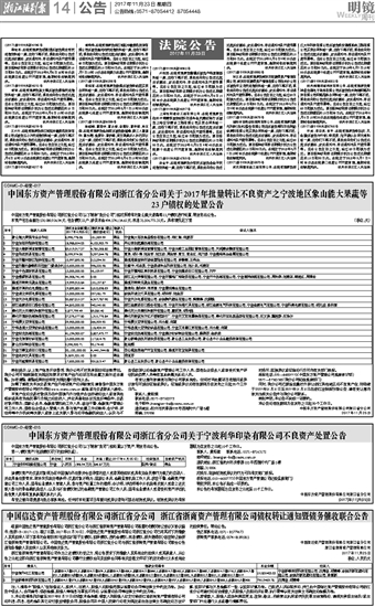 中国东方资产管理股份有限公司浙江省分公司关于2017年批量转让不良资产之宁波地区象山能大果蔬等23户债权的处置公告